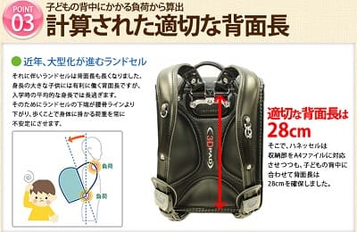 ランドセルばかりが大型化して子供の負担は増々大きくなっています。そのためハネッセルの荷重分散できるランドセルその機能を特に発揮できる時代に入っています。他のランドセルと比較するとハネッセルのメリット(優れた点)が良くわかります。下にまとめていますのでご覧になってください。他のランドセルと比較して優れている点が多いことがわかります。