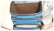 メインポケットの中はブラウン。前ポケットもある程度マチがあるので手を入れて内容物を触る事も簡単です。 |